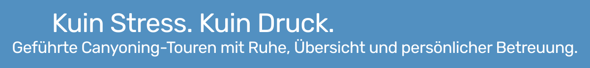 Canyoning ist für viele Gäste eine neue Outdoor-Erfahrung. Genau deshalb legen wir großen Wert auf eine verständliche Einführung, klare Abläufe und eine persönliche Betreuung. Unsere Canyoning-Touren sind so aufgebaut, dass sich sowohl Einsteiger als auch Gruppen und Firmen von Anfang an gut aufgehoben fühlen.