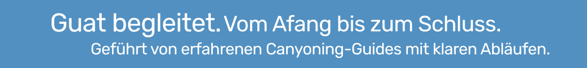 Alle Canyoning-Touren werden von erfahrenen, staatlich geprüften Canyoning-Guides begleitet. Wir kennen die Schluchten genau, beobachten Wetter und Wasserstand kontinuierlich und treffen Entscheidungen stets im Sinne der Sicherheit der Gruppe.